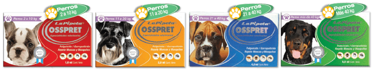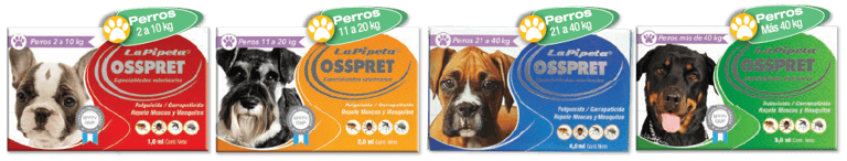 Antiparasitario externo contra pulgas y garrapatas en caninos LaPipeta® OSSPRET actúa como coadyuvante en la repelencia de moscas y mosquitos.